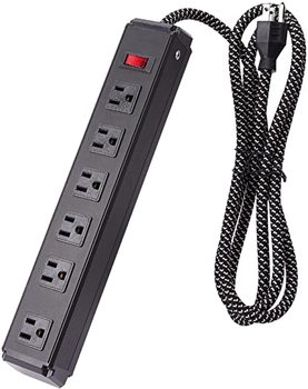 Tira de alimentación de Metal de 6 salidas, Protector contra sobretensiones con cable de extensión largo de 14 AWG, KF, resistente, montaje en pared, sobrecarga
