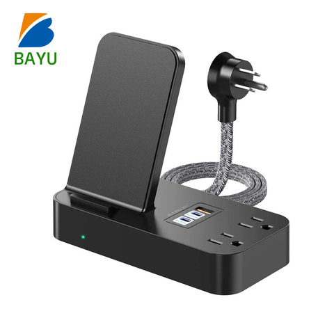 לנו 2 ac שקעים פס כוח שולחן עבודה עם מחזיק טלפון 3 מטען אלחוטי יציאות USB עבור חכם בית חכם